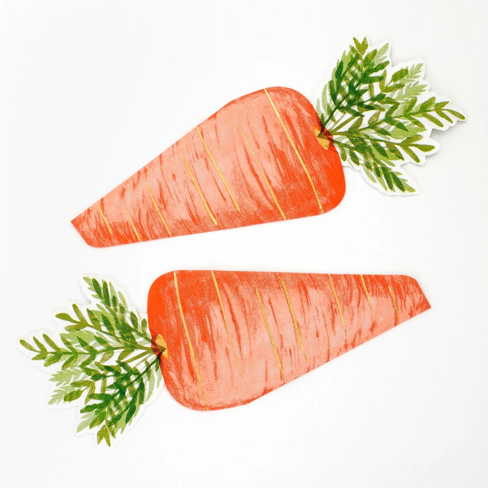 - The napkins are crafted in the shape of a carrot, with a leafy top detail